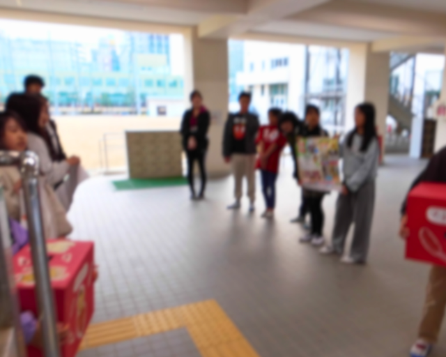 登校してきた児童は、元気なあいさつともに、もってきた募金を入れていました♪