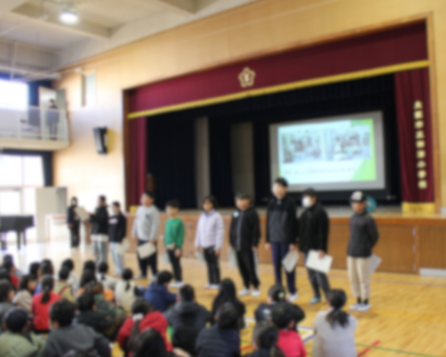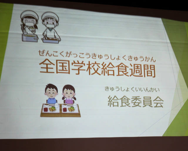 『全国学校給食週間』の内容を、クイズもまじえてのわかりやすい発表でした。