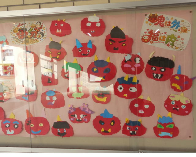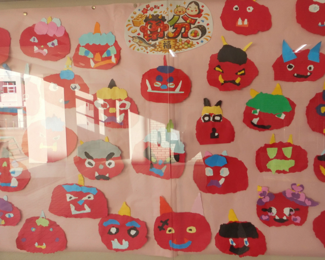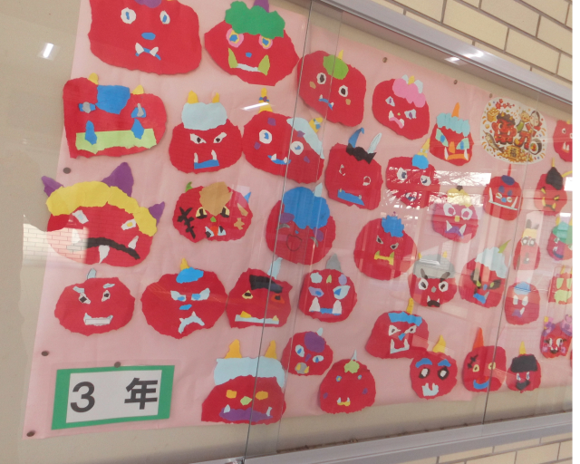 神津小学校の玄関には、たくさんの鬼がいました♪