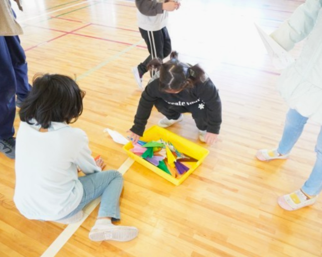 5年生が司会を務め、風船遊びや紙飛行機、ドッジボールなどの活動を通して、学年をこえて仲良く話しながら楽しく過ごす様子が見られました。