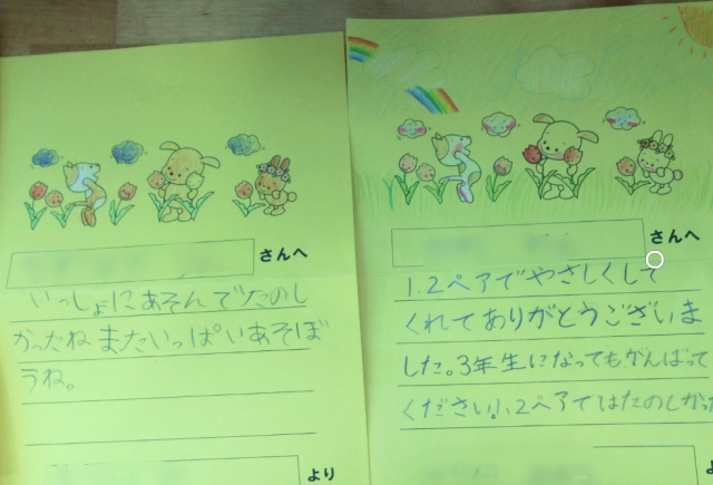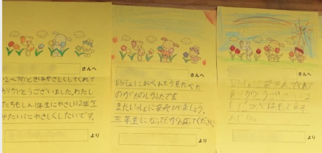 2年生からは、『4月からは新1年生のお兄さんお姉さんとしてがんばってください♪』