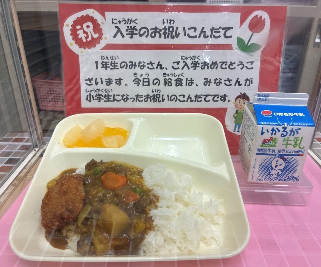 1年生のみなさん、ご入学おめでとうございます。今日の給食は、みなさんが小学生になったお祝いのこんだてです。