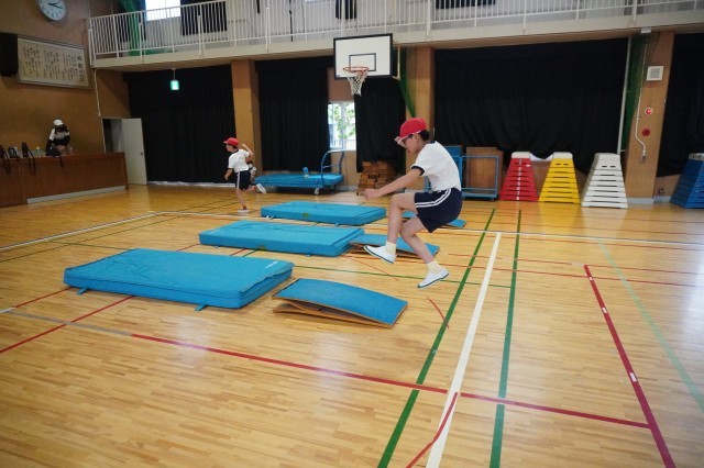 木曜日はあいにくの雨だったので、講堂で体育をしました。