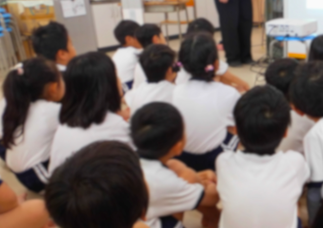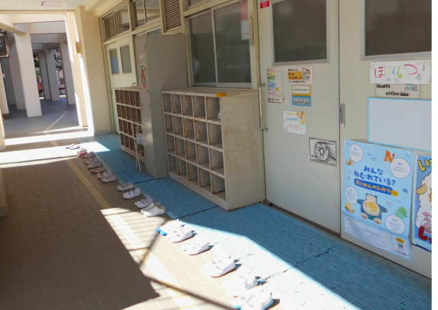 体そう服に着がえて、ほけんしつにあつまっています♪