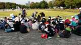 平和記念公園内をフィールドワークしました。 写真は、元安川沿いから、原爆ドームを...