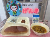 ★★★今日の献立★★★ カレースープスパゲッティ かぼちゃのマリネ焼き ミニフレ...