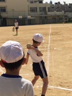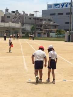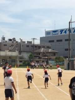 1・2・3年生は50m走、立ち幅跳び・ソフトボール投げの3種目。4・5・6年生は3種目+上体起こし・反復横とび・20mシャトルラン・長座体前屈・握力の8種目を測定します。下級生の測定を上級生が手伝ってくれました。暑い中での測定は大変だと思いますが、正しい測定になるようにアドバイスしたり、応援したりしていました。