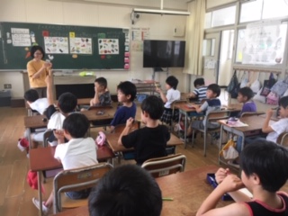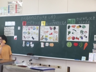 2年1・2組で「栄養指導」が行われました。2年生の教材は「たべもののはたらきをしろう」です。まず給食の献立表にもある「あか」「き」「みどり」の栄養素に実際の食べ物を分けると、どこに入るのかを考えました。はじめは、迷っていましたが、慣れてくると「野菜だから・・・」と理解することができていました。その後、それぞれのはたらきについて栄養士の先生から教えていただきました。