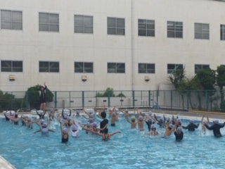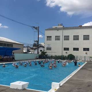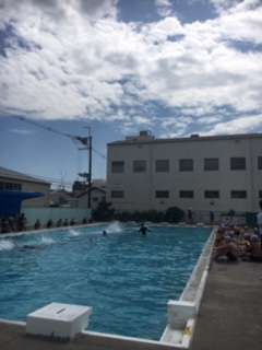 朝の水温は24度、気温24度。水泳可能と判断され、本日プール開きとなりました。