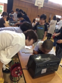 5年生は林間学習に持っていくかばんに付ける名ふだキーホルダーをつくりました。講堂に机を並べ保護者の方々といっしょに楽しく話をしながら作っていました。下書きをしていましたが、納得のいくものをつくりたい!と時間いっぱい作業を行う子もいました。林間学習が楽しみですね。