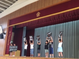 金曜日の「田川フェスティバル」にむけて、各学級よりお店の紹介がありました。