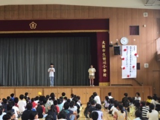 朝から「田川フェスティバル」を楽しみにしている子どもたちでした。講堂でめあての確認や注意事項を聞き、いよいよ始まりです。