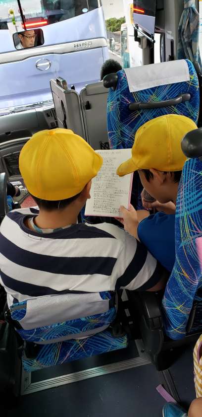 バス車内では、カラオケ大会やクイズ大会が行われています。