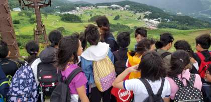 頂上に到着しました!頂上は雄大な景色が広がり、立っているのもやっとなぐらい風が強く、大自然を肌で感じることができました。