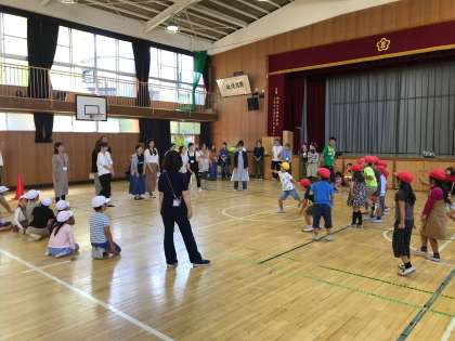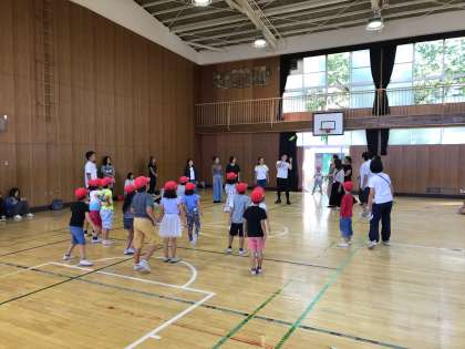 保護者の方と一緒にする活動は、「ドッジビー」。
