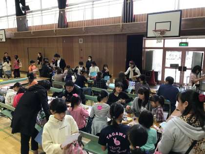 PTAの方々のおもちゃづくりコーナーや、はぐくみネットの「ぽっかぽか」の方々による読み語りコーナーを、子どもたちは楽しそうにまわっていました。