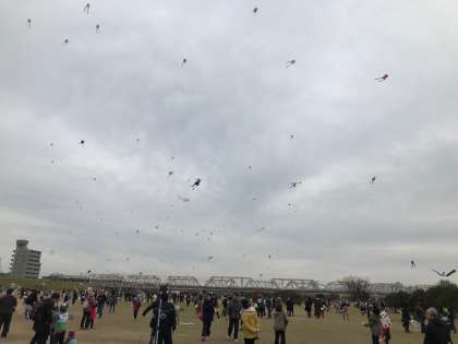 天気が良くて暖かかったのですが、上空は風があり、例年以上にたくさんのたこが空に舞っていました。