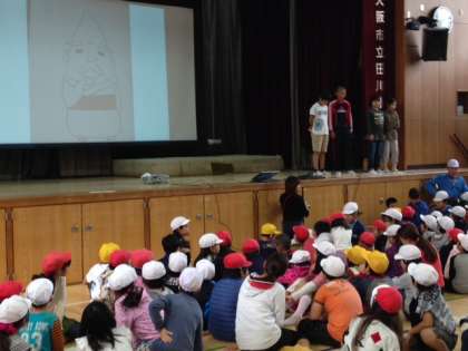 今回の集会は妖怪当てクイズをおこないました。アニメ妖怪ウォッチに出てくる妖怪を集会委員会が書きました。それをスクリーンで写し、みんなで名前を答えます。人気の妖怪ウォッチ。とても賑やかな集会となりました。とても楽しそうでした。