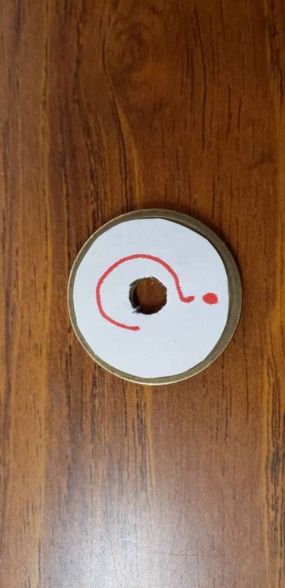 何も見ずに、5円玉のうら(元号が書かれていない方の面)の絵をかきましょう。
