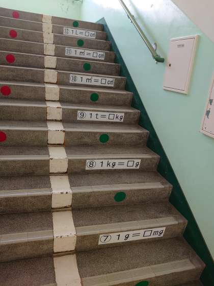 階段を上るときも、教室にもどるときも、算数を楽しんでください♪
