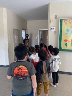 教室での学習だけでなく、校舎内を見学したり、トイレの使い方を学習したりもしました。