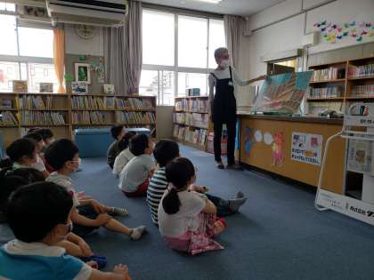 >大型絵本「ニャーゴ」の読み聞かせもして頂き、子どもたちは、目を輝かせて、お話にひきこまれていました。