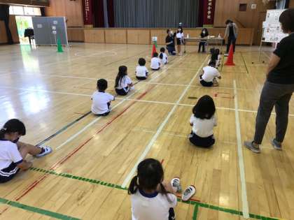 1年生は、小学校で初めて体操服に着替えて活動しました。どの子も、お家でしっかり練習していたようで、着替えるのが上手にできていました。