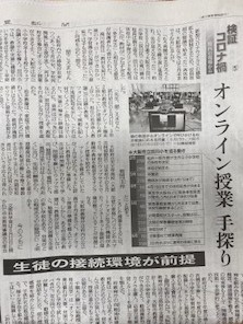 先日、読売新聞から受けた「双方向授業」についての記事が、今日の朝刊に掲載されました。校長先生が話した休業中の学習のことやオンライン授業のことが載っていました。