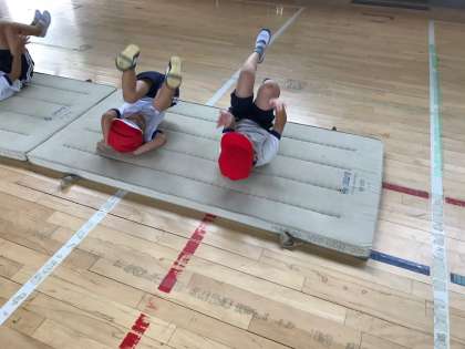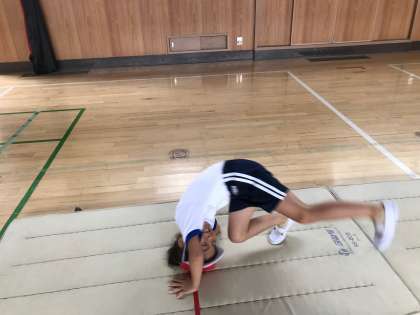 1年生は現在、体育の授業でマットをつかった運動遊びをしています。