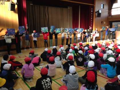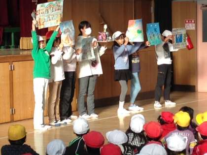 児童集会の後に図画工作名人の発表がありました。今回は4.5.6年生の発表でした。いろんなところに細かいお工夫があり、さすが高学年といった作品がたくさんありました。