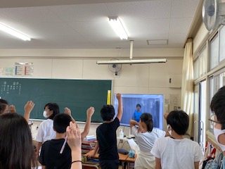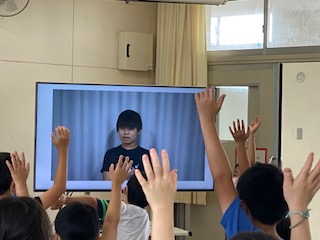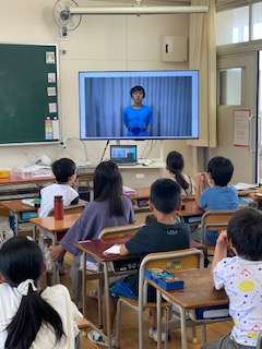 毎週水曜日は「児童集会」があります。今週の集会は「船長さんがいいました」です。今までならば、縦割り班で講堂に集まって、みんなで行っていました。感染防止、熱中症予防のため、本日初めてテレビを使っての集会を試みました。あらかじめ録画しておいた集会委員会のビデオを各学級で観てもらい、一緒にゲームをしてもらうのです。タイミングが難しいので、みんなに楽しんでもらえるか不安でしたが、学級でもりあがっているようでした。