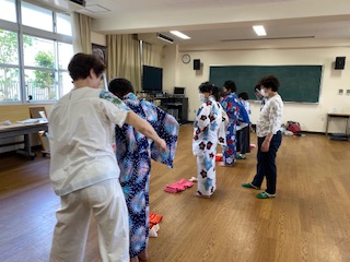 6年生の希望者が「ゆかた」の着方を教えていただきました。ほぼマンツーマンで、ていねいに教わり、「自分でゆかたが着れた!」と喜んでいました。「初めてゆかたを着た」と言う子もいて、いい経験になりました。