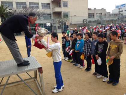 今日の朝会では、ソフトボールや夏休みの課題の絵や読書感想文の表彰が行われました。みんな頑張った成果が出てとてもうれしそうに賞状を受け取っていました。