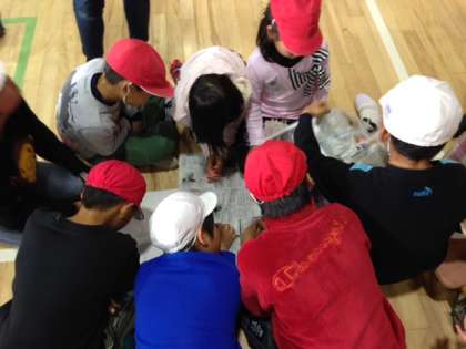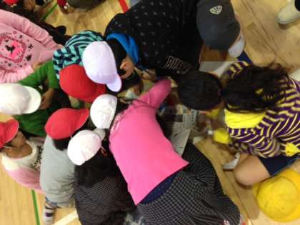 今回の児童集会は新聞切り抜きゲームでした。新聞の中のひらがなやカタカナを一文字ずつ切り抜き、先生方の名前を完成させます。みんな夢中で探していました。とても楽しい集会となりました。
