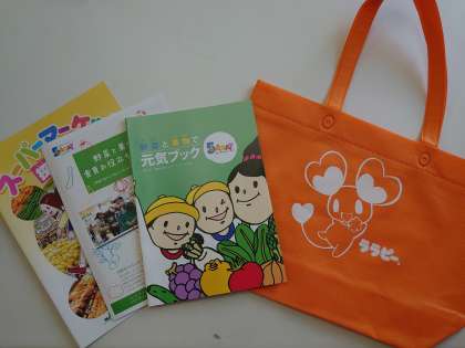 学習や食生活の充実に役立つパンフレットと、ららぴーちゃんのエコバックをおみやげにもらいました(o^—^o)