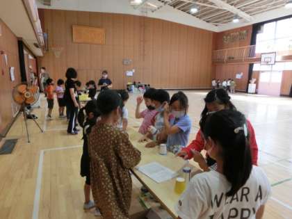 今日は、2−1のおもちゃランドを行いました。8つのお店がずらりと並び、1年生は2年生の作ったおもちゃで楽しく遊んでくれました。今日は1年生の笑顔を見ることができて、大満足の子どもたちでした。