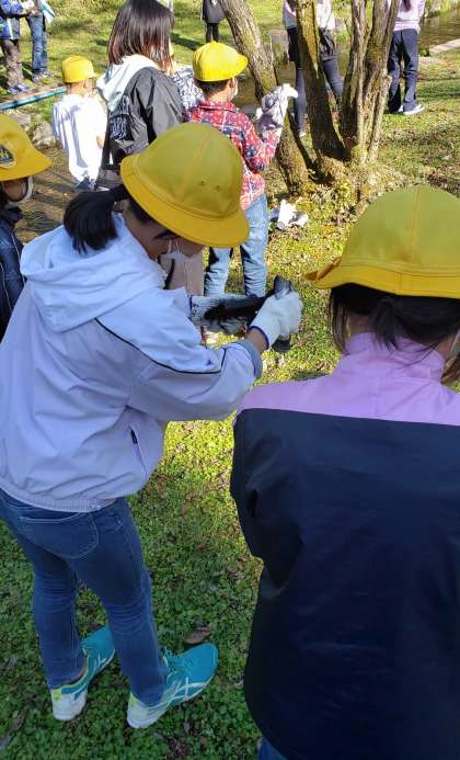 作り終わった後は、透き通った川の水に触ってみたり、自然の中で遊んだりしました。川の水は、とっても冷たかったです。