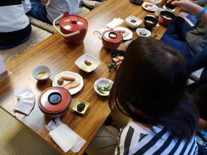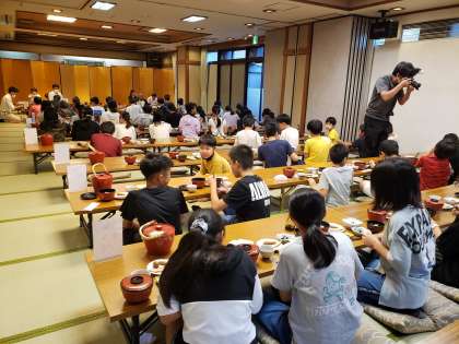 6時起床!朝早かったですがみんなきちんと起きられました。しっかりとご飯を食べて、宮島へ出発します。