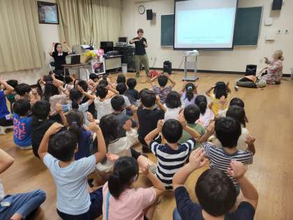 最後は「補助犬って知ってる」を手話を交えてみんなで一緒に歌いました。初めて聞く歌、手話でしたが子どもたちは、よく見て、よく聞いて一緒に歌うことができました。