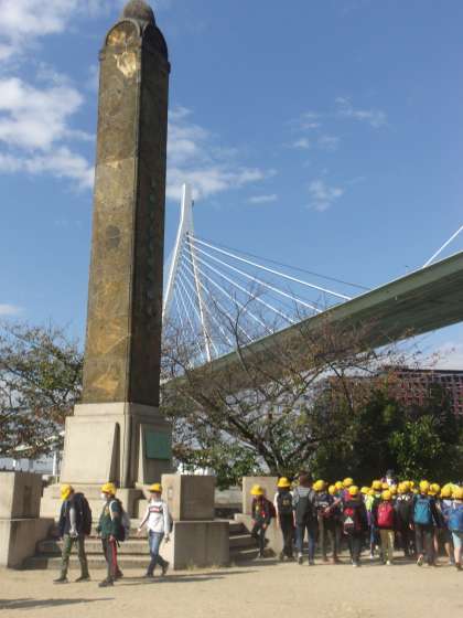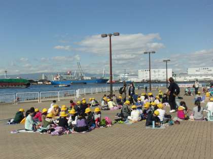 その後、「ハンカチ落とし」などのみんな遊びを楽しみ、日本一低い山「天保山」に登頂し、帰校しました!