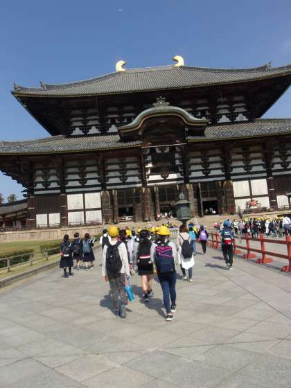 塚本駅からJRと近鉄を乗り継ぎ、到着です!まずは、東大寺の大仏殿!