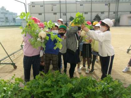 昨日の1年生に続いて、11月30日、今日は2年生が聖護院ダイコンの収穫日です!