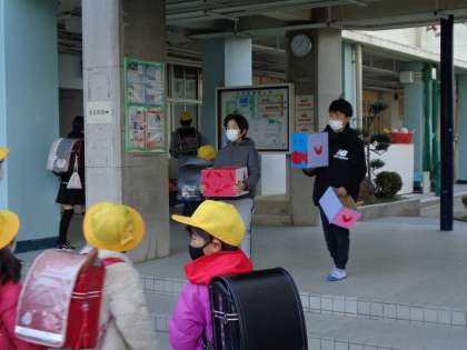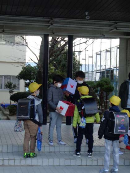 まずは、登校時!「赤い羽根募金」がスタートしました!