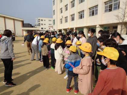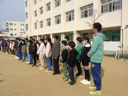 本日、6年生の卒業を祝う会を行いました。全学年がグランドに集まり、卒業を祝福するメッセージと合唱を全員で行いました!