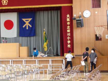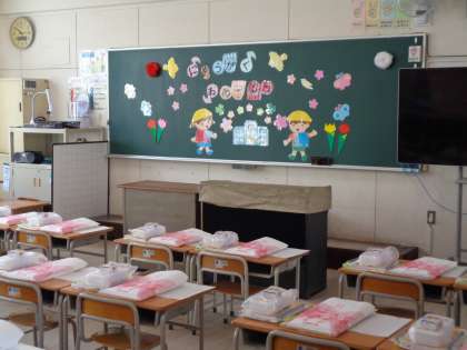 明日の入学式に向けて、準備を行いました。講堂や新入生の教室の整備と準備です。新6年生も登校し、準備を手伝いました。早くも学校のリーダーです。