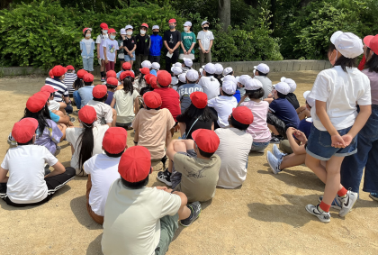 オリエンテーリングの中で大阪城公園に残る戦争の爪痕についても学習をしました。写真の2枚目は爆風でずれた大阪城の石垣です。子どもたちは、なんでずれたのか初めはわからない様子でした。しかし、理由がわかると「なんでこんなことをしたんやろ」「めっちゃ怖い」「今のロシアとウクライナはどうなんやろ」と戦争についても少し考えることができました。