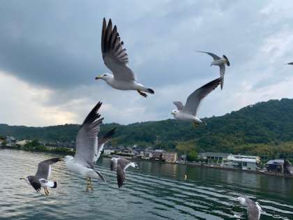 沢山のうみねこに囲まれ、子どもたちは大興奮でした。