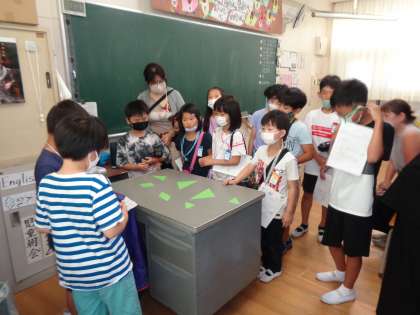形や大きさが異なる「三角形」と「平行四辺形」かな?ここのブースは、算数の学習コーナーでしょうか?
