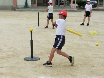 本日(7月14日)、スポーツ出前授業として、外部講師の方が、5年生にティーボール(ソフトボールのようなもの)を教えに来てくださいました!