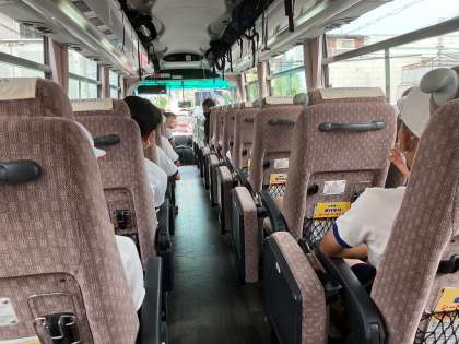 バス内では、子どもたちが考えたレクリエーションを楽しんでいます。